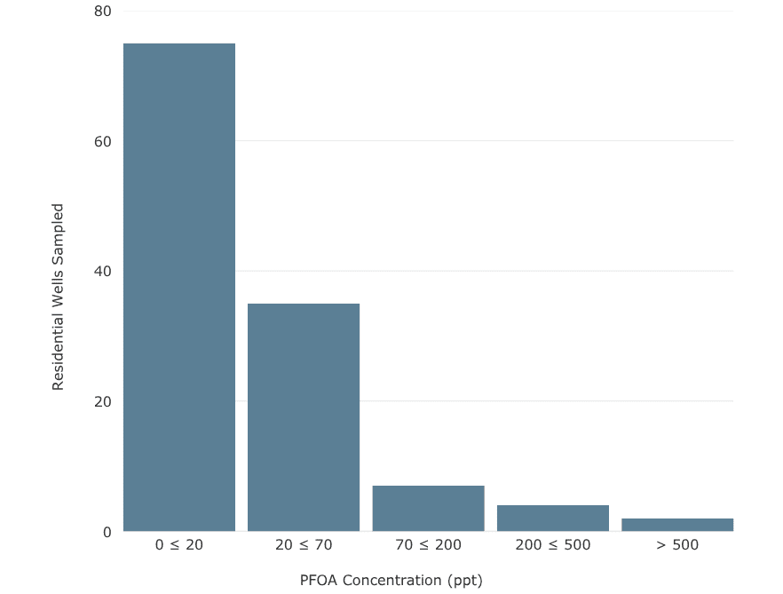 Gore began posting summary graphs of residential water sampling results in November 2024. These visuals are updated monthly to reflect the latest available data.